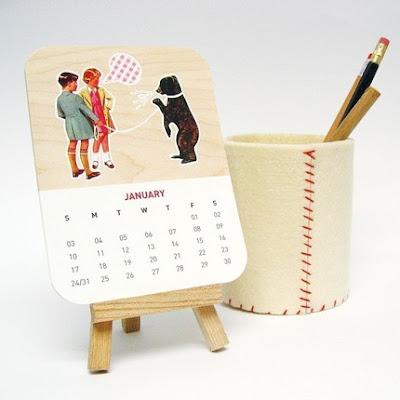 Een vers nieuw jaar zit eraan te komen, dus de jacht op leuke kalenders en agenda’s is weer open. Deze bureaukalender van Cabin + Cub die verkocht wordt samen met een mini-ezeltje verdient een ereplaatsje. Voor elke maand een nieuwe collage in retrostijl. Hebben!