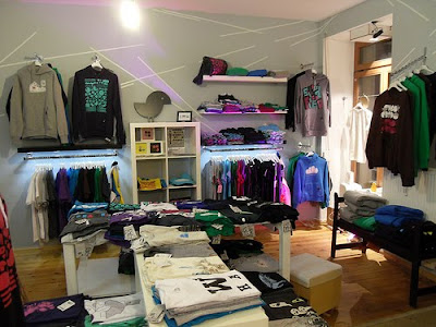 Een beetje verder, aan het andere uiteinde van de straat, vind je Silberfischer’s Home Shop. Koppel Elke en André startten 5 jaar geleden een eigen kleurrijke kledinglijn met vooral t-shirts en hoodies met leuke opdrukken en een sterk urban luchtje aan. Hun kruissteekbuttons waren een schot in de roos en zijn onder andere te koop in het MOMA in New York! In hun fysiek winkeltje vind je naast hun eigen ontwerpen ook heel wat kledinglijnen van andere (voornamelijk Berlijnse) designers. Toen wij passeerden, troffen we ze achter de naaimachine aan in de winkel, druk bezig met nieuwe ontwerpen. Beetje prijzig wel, maar als je bijvoorbeeld een t-shirt ziet, maar niet de juiste kleurcombinatie vindt, kan die ter plaatse speciaal voor jou in elkaar gestoken worden! Als dat geen service is!