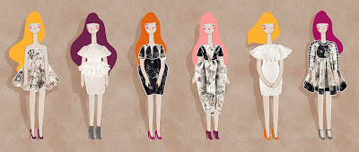 Ik houd wel van haar eenvoudig getekende kleurrijke vrouwtjes met minimondjes en kraaloogjes. Haar tekeningen van de recente catwalkcollecties verraden een zwak voor mode. Dit resulteerde dit jaar onder andere in een samenwerking met designer Lamija Suljevic, waarvoor ze een look book illustreerde: