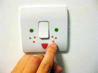 Beetje winterblues? Dan kan zal dit leuk ideetje van Henrietta Swift je wel opkikkeren. Stickertjes ‘Lighten Up Your Mood’ om een alledaagse schakelaar te transformeren in een vrolijk gezichtje. Toppie!