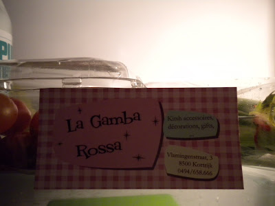 Al enkele keren stond ik met mijn neus tegen het etalageraam van een winkeltje in Kortrijk gedrukt. Het is dan ook verser dan vers en gisteren ben ik er eindelijk eens binnengesprongen. Naam: La Gamba Rossa. Locatie: Vlamingenstraat in Kortrijk, vlakbij het gloednieuwe shoppingcentrum K. Je kan in dit schattige, meisjesachtige winkeltje terecht voor fleurige decoratiespulletjes en kitscherige cadeaus. Denk merken als La Marelle en Papier, Kitsch Kitchen en Pakhuis Oost. Let wel: de winkel is alleen van dinsdag tot en met zaterdag ‘s namiddags open. Had een leuke babbel met de zaakvoerster en beloofde wat reclame voor haar te maken. Bij deze!
